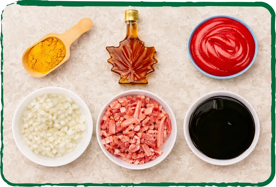 un mélange d’oignons caramélisés et de fumée liquide (ou paprika fumé).